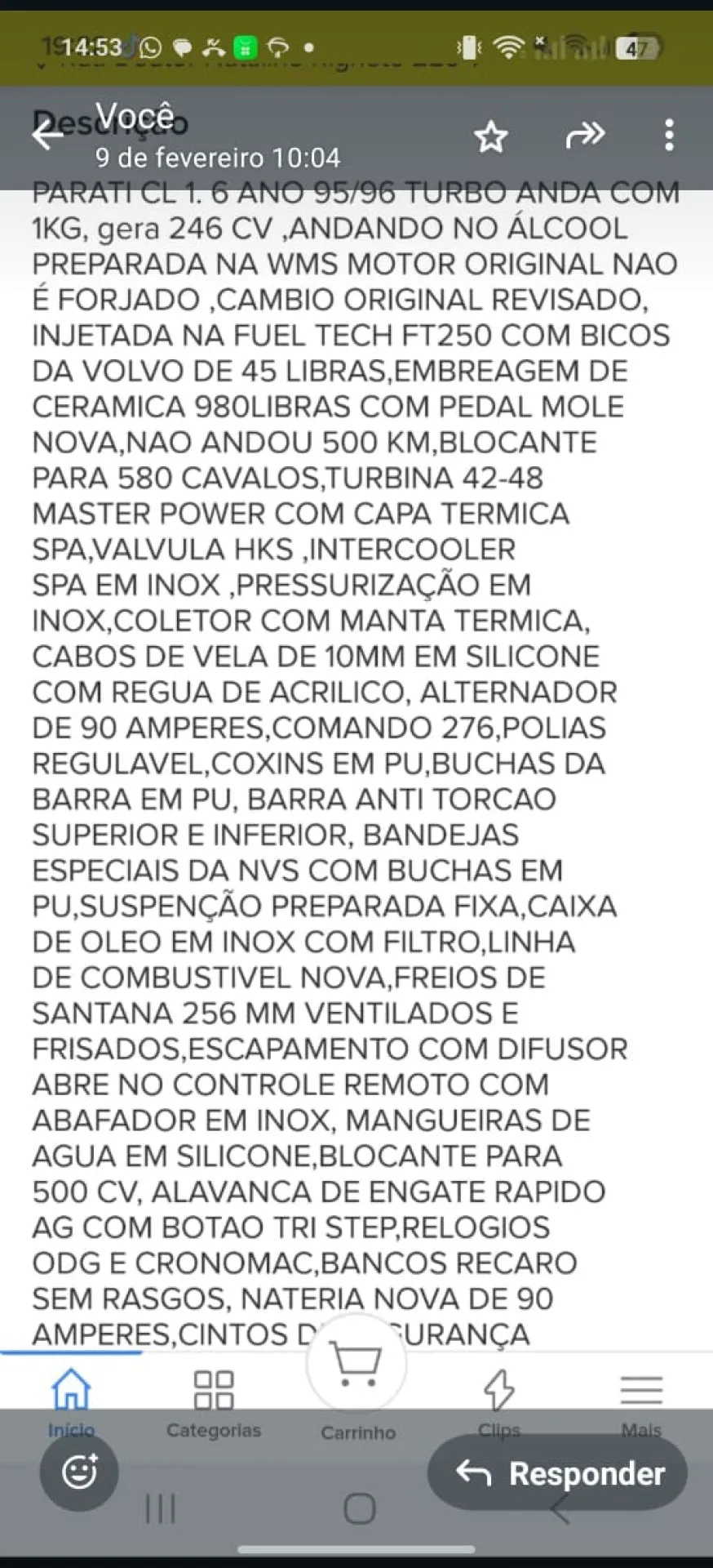 Concorre com 2 númerosPARATI CL 1.6 1996 TURBO OU 30 MIL NO PIX